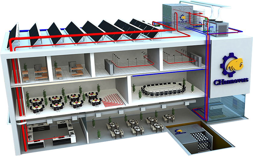 一.某軍工集團監控樓“太陽能+”采暖、熱水項目建設地點:內蒙古包頭市建設時間:2019年技術形式:太陽能+空